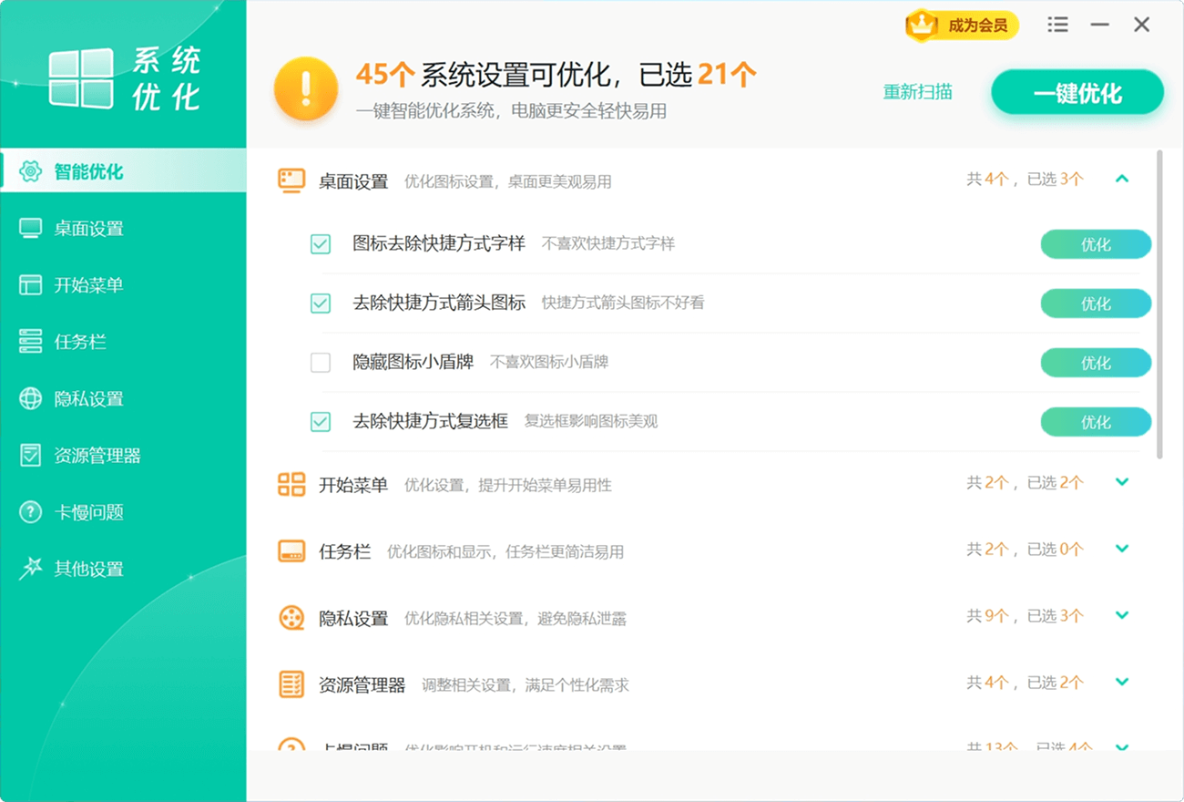 24系统设置项平均每天帮用户优化